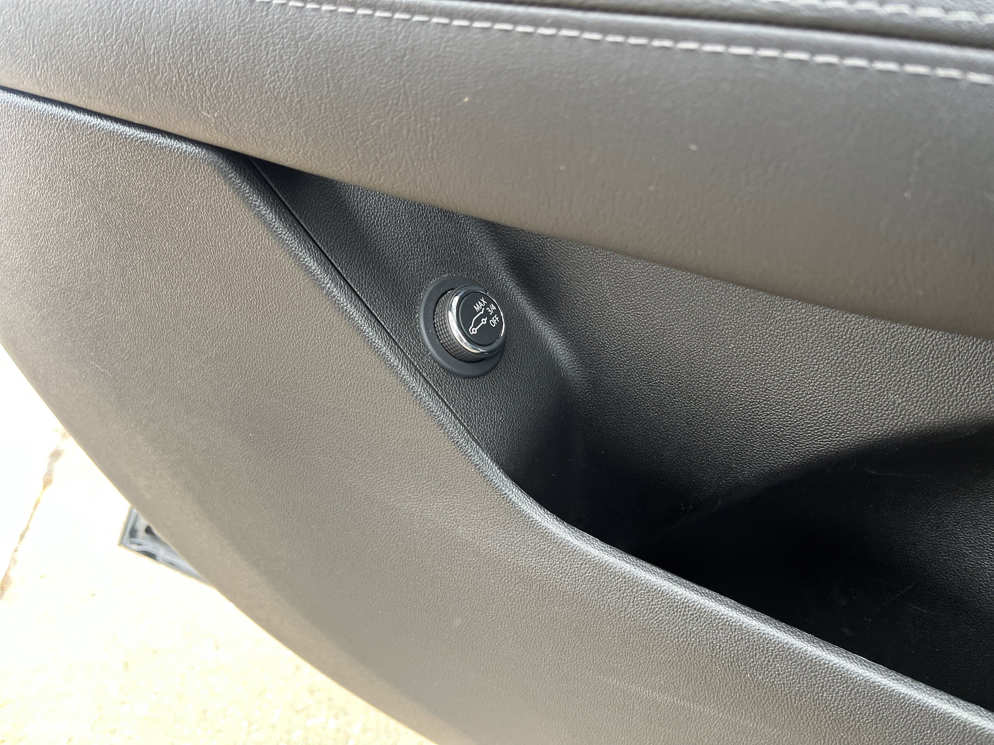 - Opens or closes when the system senses the key fob and the driver extends their foot under the left-hand side of the rear bumper over an image of the Cadillac Crest projected under the vehicle